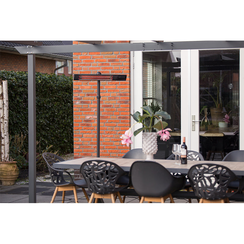 En outre, ce chauffage fonctionne avec une onde courte, de sorte que le corps est chauffé directement. Cela signifie que le vent n'a aucune influence sur la merveilleuse chaleur que vous ressentez avec ce chauffage. Et avec plus de 8000 heures de vie prévues, vous pouvez rester dehors pendant des saisons.